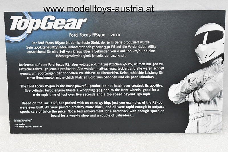 Ford Focus RS500 RS 500 2010 TOP GEAR The Stig matt black 1:18