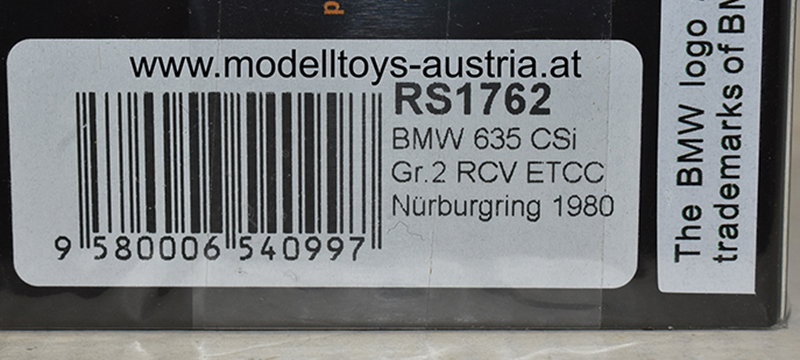 BMW E24 635 CSi Coupe Gr.2 1980 Nürburgring ETCC Heribert WERGINZ / Harald NEGER / Umberto GRANO Vienna Grundig 1:43