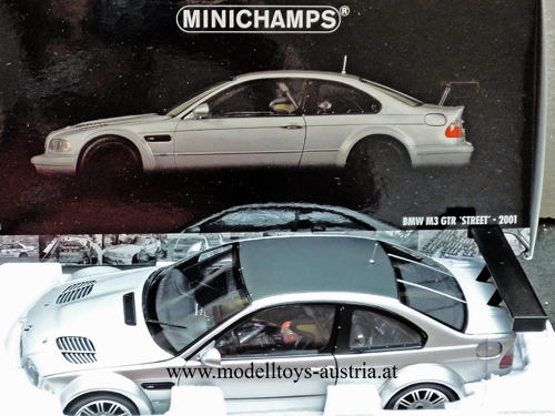 BMW E46 Coupe M3 GTR 2001 mit CARBON Dach silber metallik 1:18
