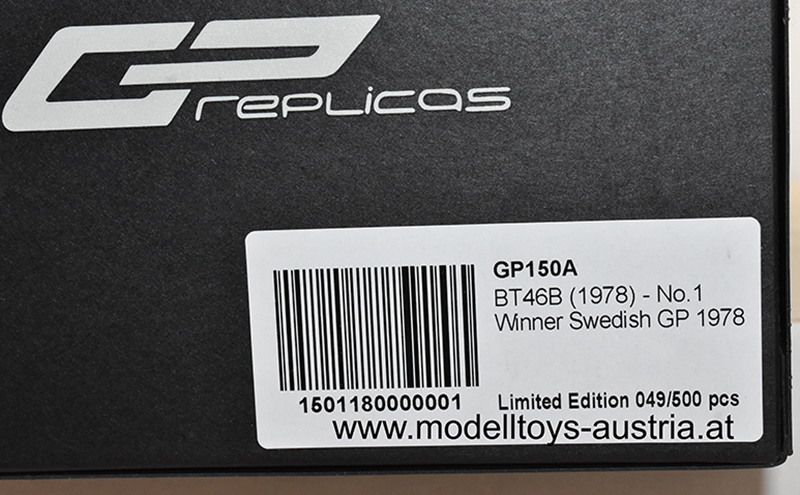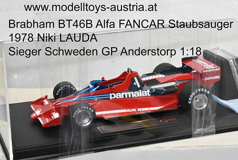 Brabham BT46B Alfa FANCAR Staubsauger 1978 Niki LAUDA Sieger Schweden GP Anderstorp 1:18