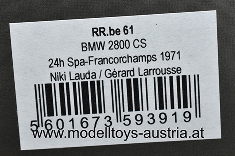 BMW 2800 CS Alpina 1971 Spa 24 Stunden Rennen Niki LAUDA / Gerard LARROUSSE 1:43