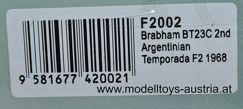 Brabham BT23C Ford 1968 F2 Jochen RINDT 2nd Argentinian Temporada 1:43